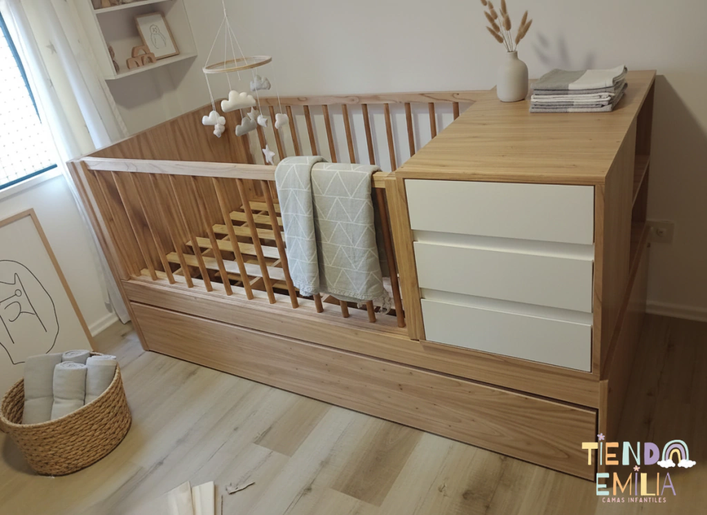 La Cuna Evolutiva Anna es la solución perfecta para acompañar el crecimiento de tu bebé sin la necesidad de cambiar de muebles constantemente. Pensada para adaptarse a cada etapa, esta cuna funcional se transforma de cuna a cama de una plaza, incorporando además una práctica cajonera y una mesa de luz integrada.